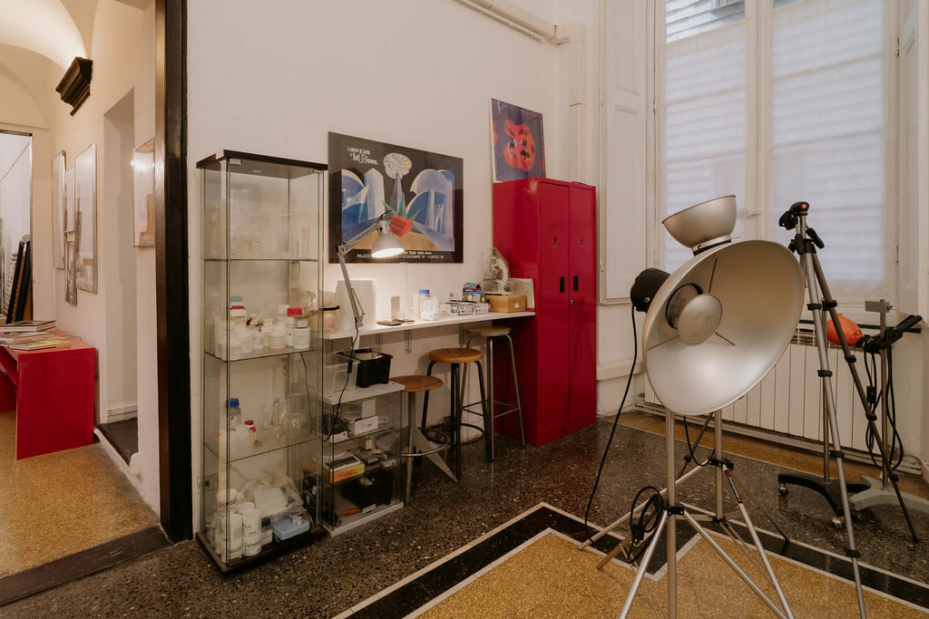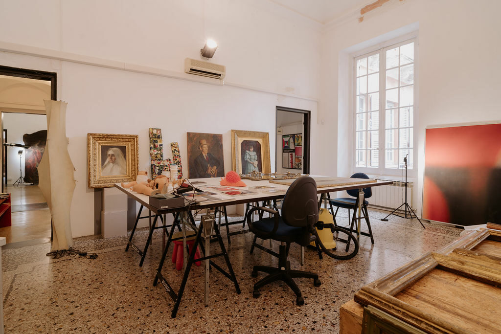 Nel mese di agosto 2020, mi sono trasferita nell’attuale sede, nel prestigioso Palazzo Cattaneo Della Volta, uno dei palazzi dei Rolli del centro storico genovese. L’ampiezza dei saloni (tot. 240 mq.) ed un’altezza dei soffitti di 5 metri permettono l’accesso e la movimentazione di opere di ampia dimensione.