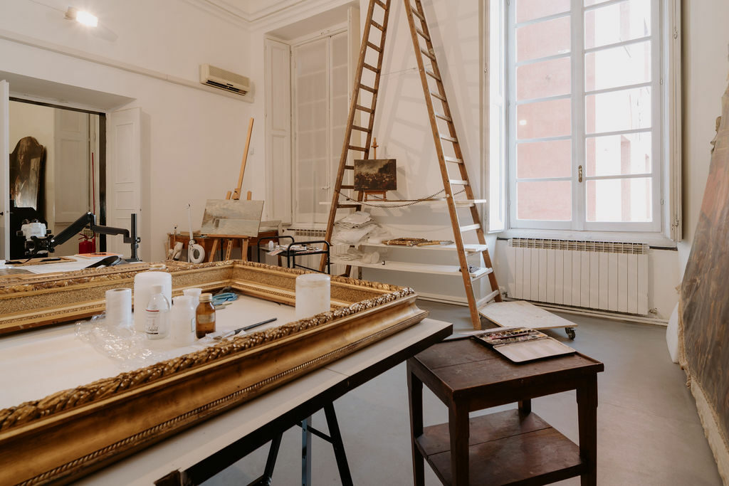 Immagino il mio laboratorio come uno spazio condivisibile di idee e professioni, un luogo in cui respirare arte in tante delle sue sfaccettature, un circolo virtuoso che crei rapporti professionali importanti tra i tanti professionisti del settore restauri.