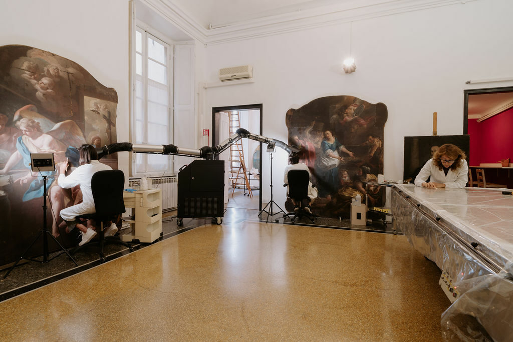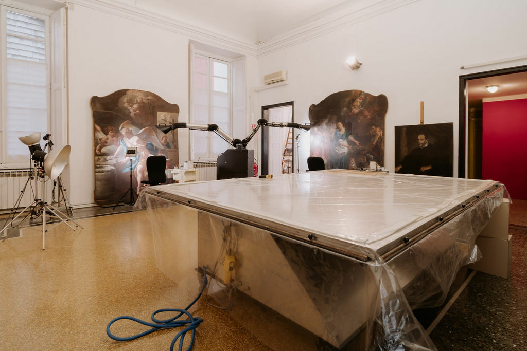 - Indagini diagnostiche specifiche (stratigrafie - RX – Riflettografia IR – XRF – FTIR – tra le principali) in collaborazione con laboratori privati e con l’Università degli Studi di Genova.